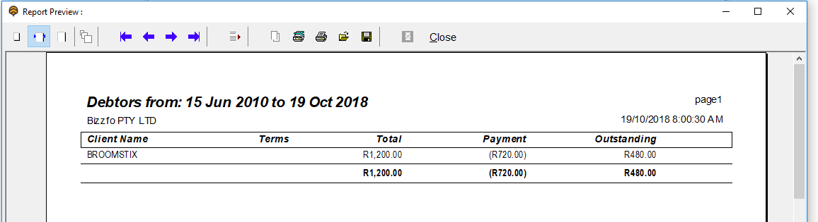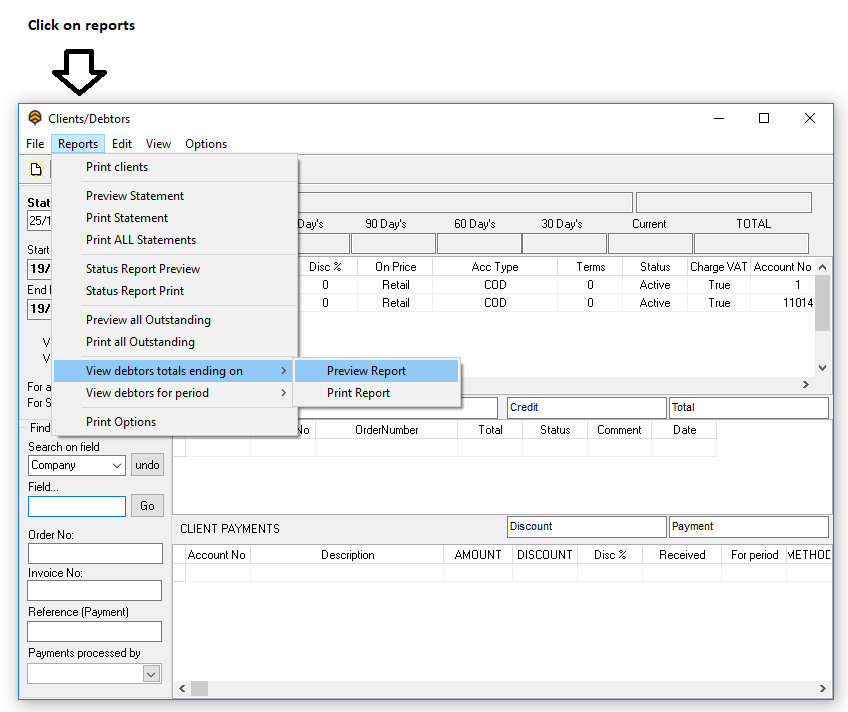 Select the date ending - all debtors and their outstanding totals will be displayed up and to this date