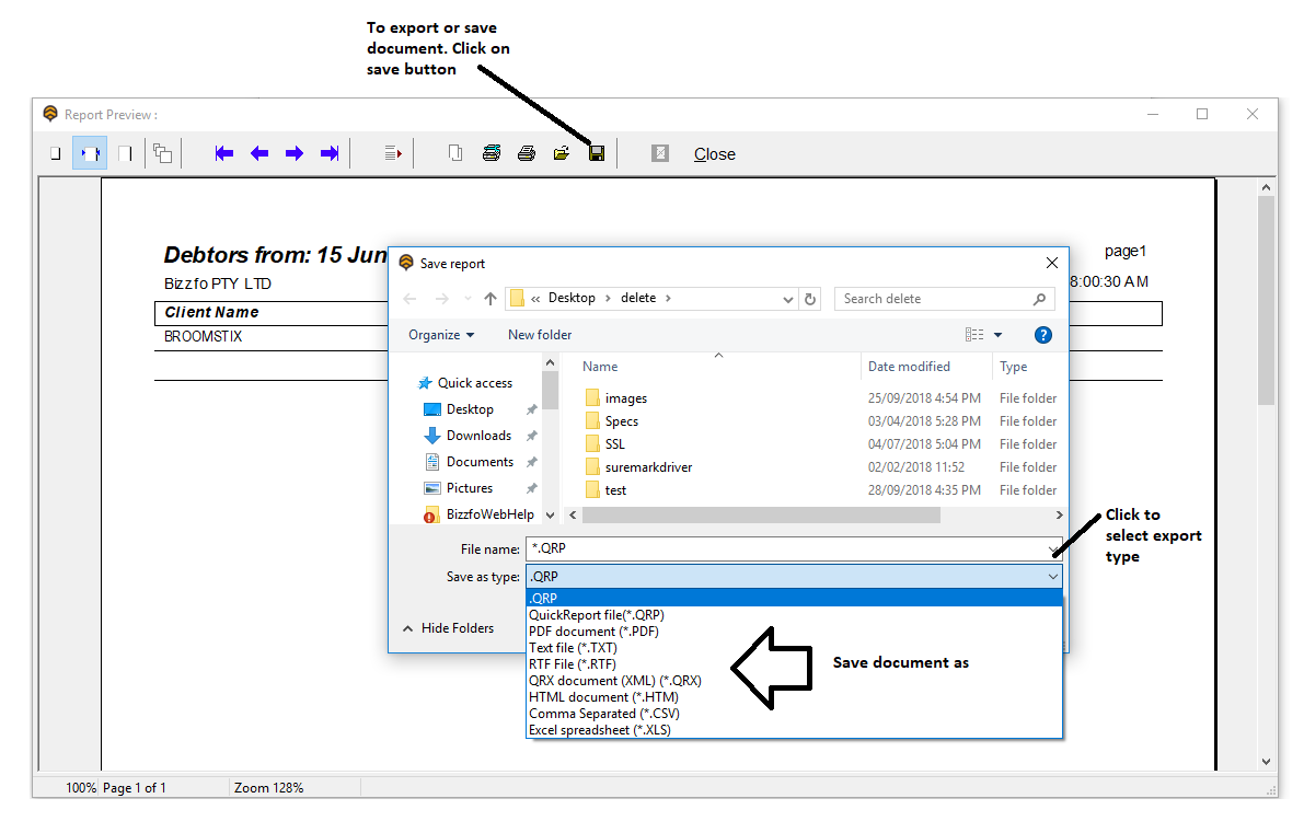 Use the following steps to get the debtors balance on a specific date. The bottom section contains steps to export document