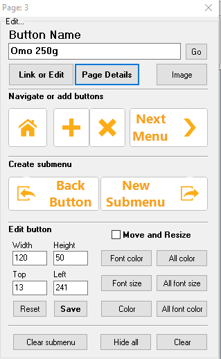 The Page Details form allows you to view and further edit your button setup. This includes options like: