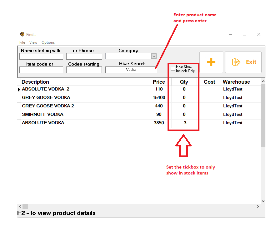 The Hive search allows branches to check stock in other branches. This search will only work if all branches are linked up to the Hive