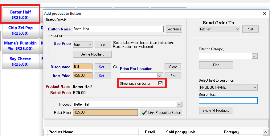 The retail price or the price per location will be shown on the button when Show Price On Button is set to True. By default it is not displayed.
