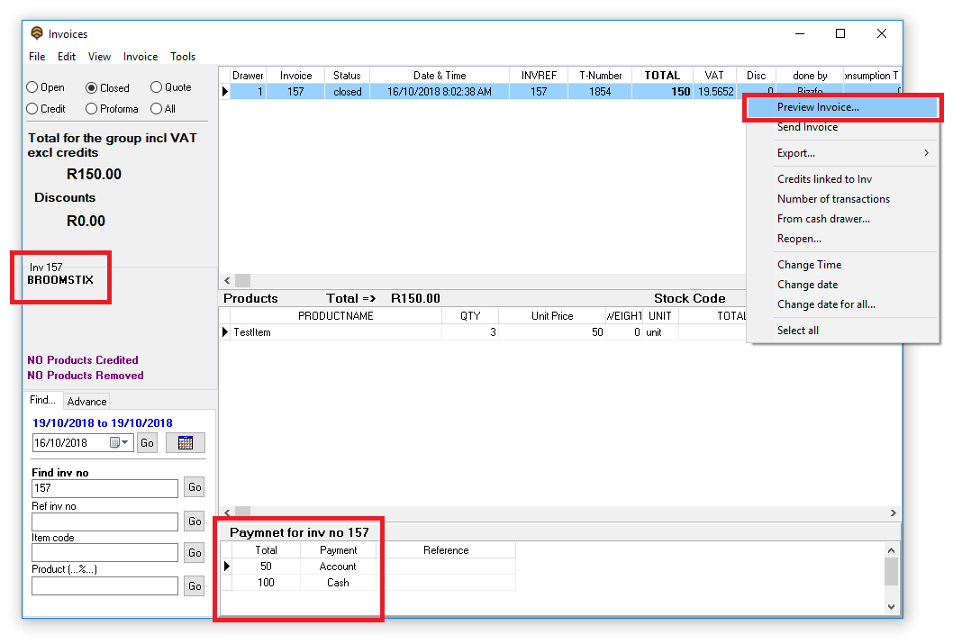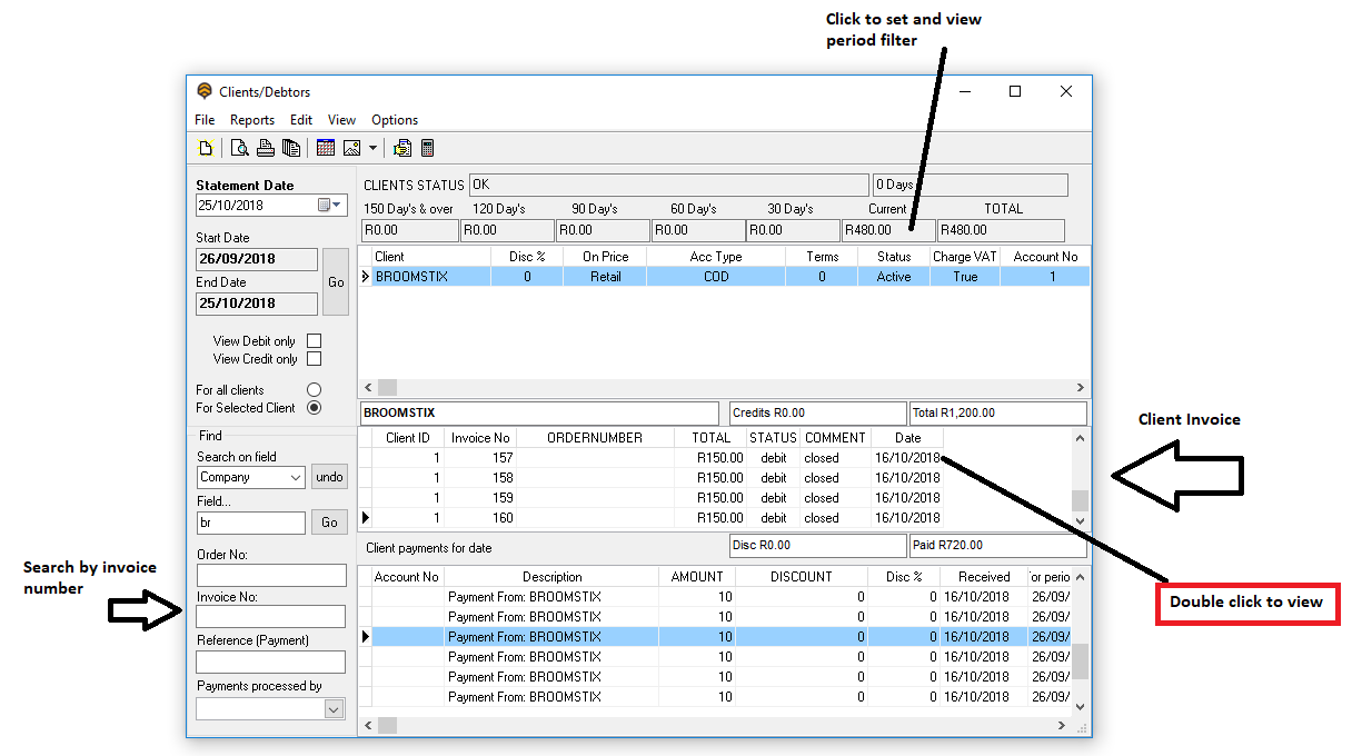 See screen below on how to open client invoice